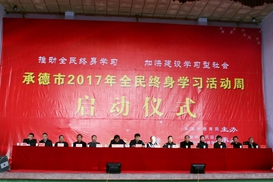 11月17日,承德市“2017年全民终身学习活动周”启动仪式在平泉市举行。承德市人大副主任孔庆龙、承德市副市长兼平泉市委书记董正国、承德市政协副主席关继高、承德市教育局、承德市人力资源和社会保障局、民政局、文广新局主要负责同志、平泉市四大班子有关人员、各县区教育局主管局长、股长,及全市各社区代表、平泉职教中心部分师生一千余人出席和参加了启动仪式,启动仪式由教育局副局长刘伟主持。